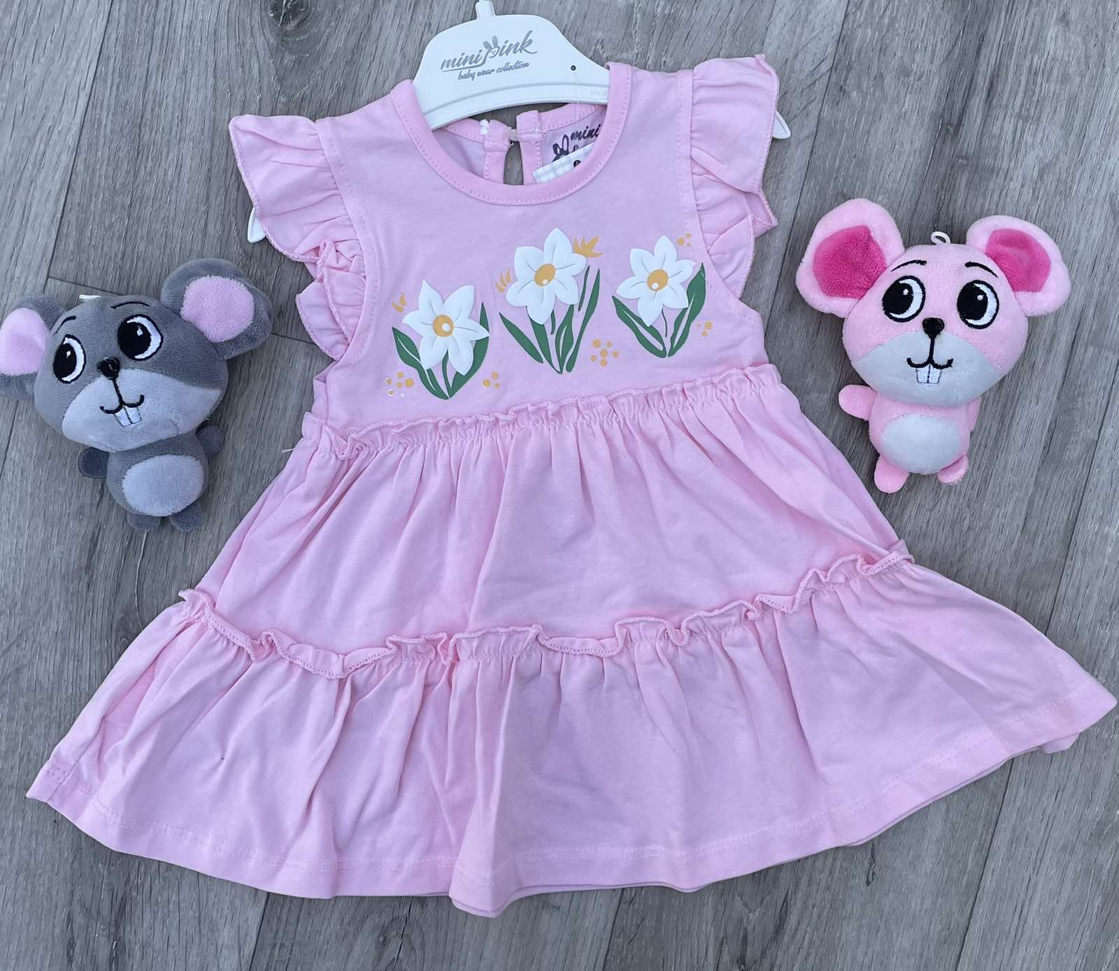 Сукня Mini Pink "Квіточки" рожева, 9-12-18-24 місяців оптом уп. - 4 шт.