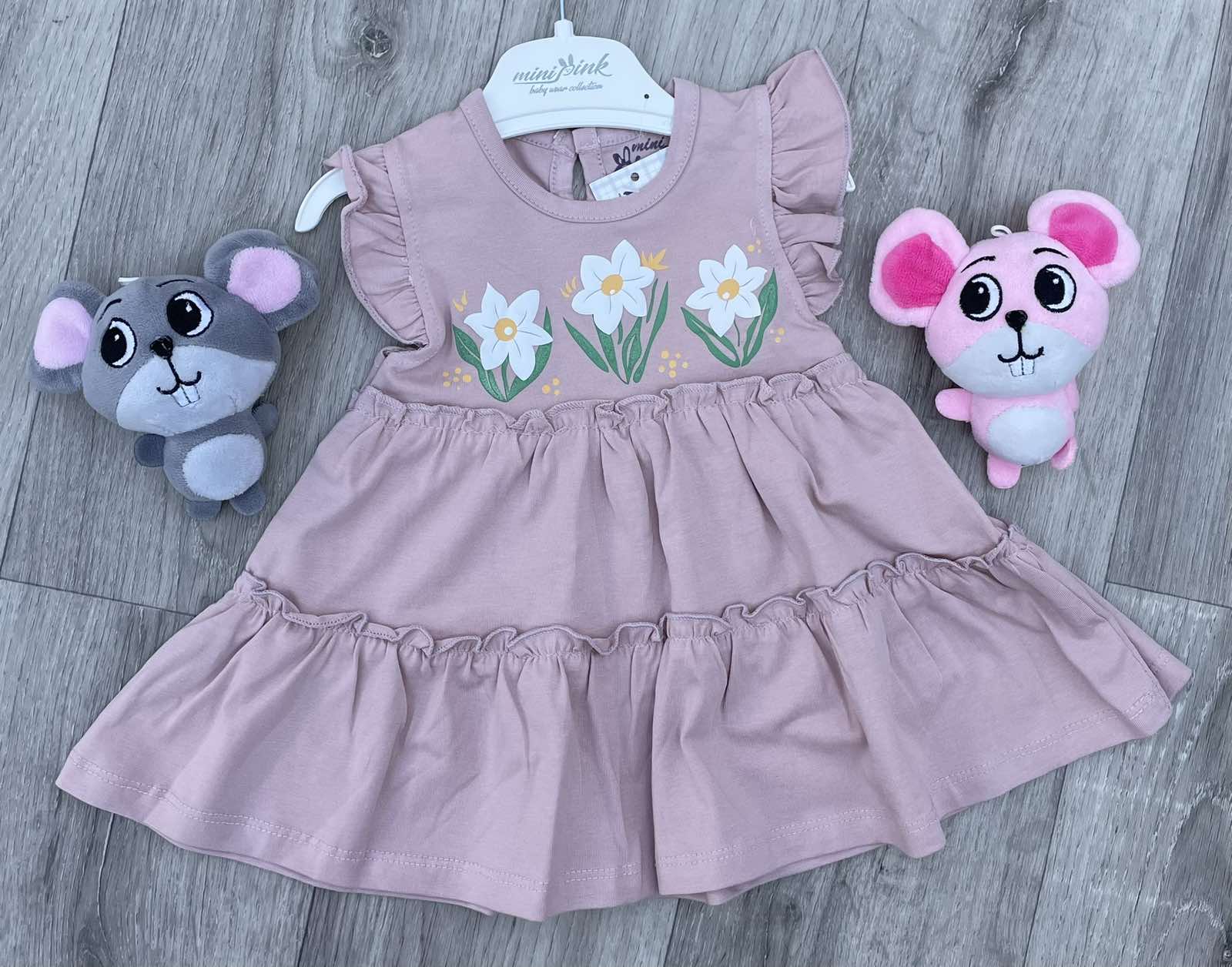 Сукня Mini Pink "Квіточки" теракотова, 9-12-18-24 місяців оптом уп. - 4 шт.