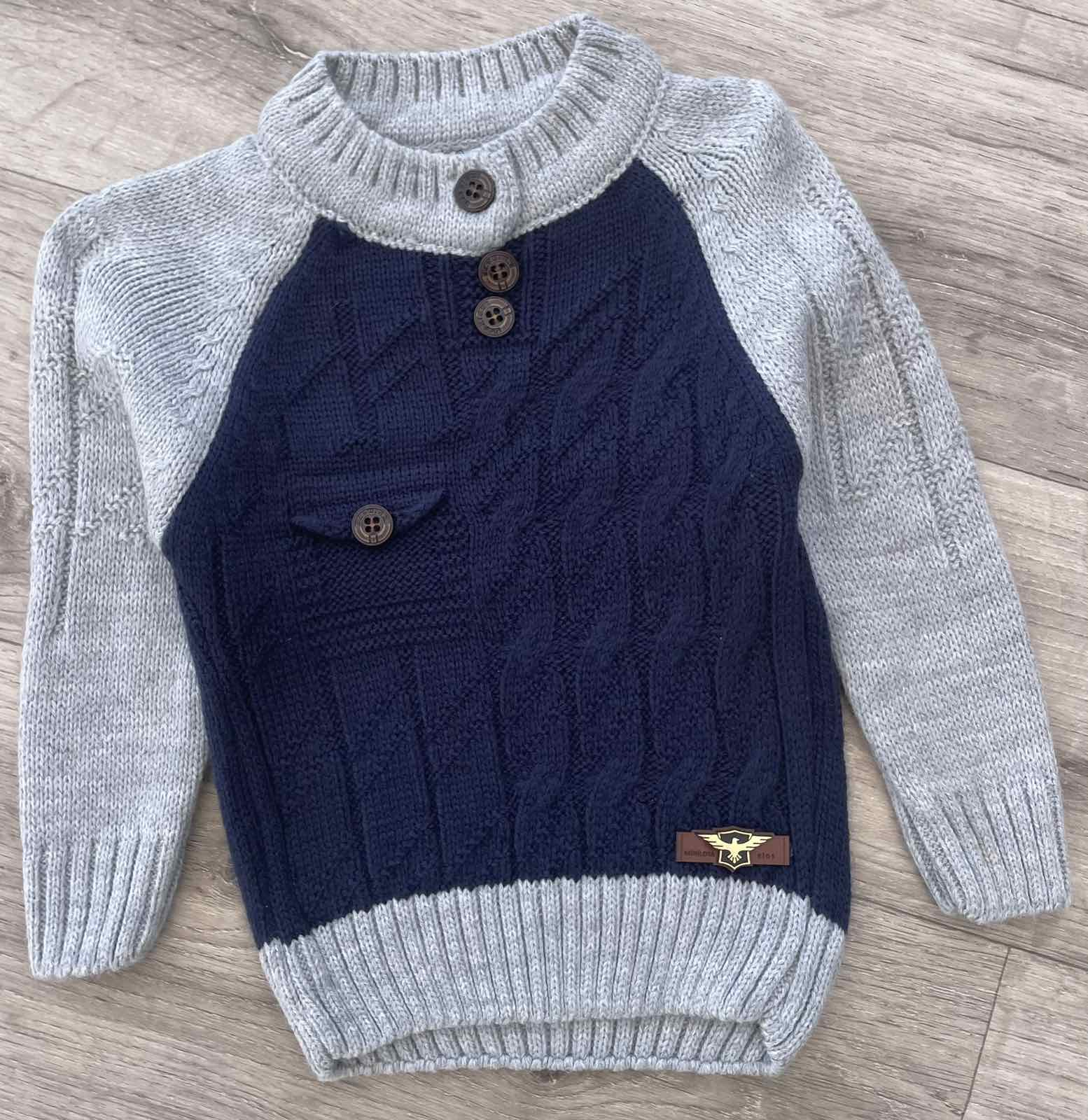 Светр "Гудзики" сірий з синім, хлопчик 1 рочок оптом уп. - 1 шт.