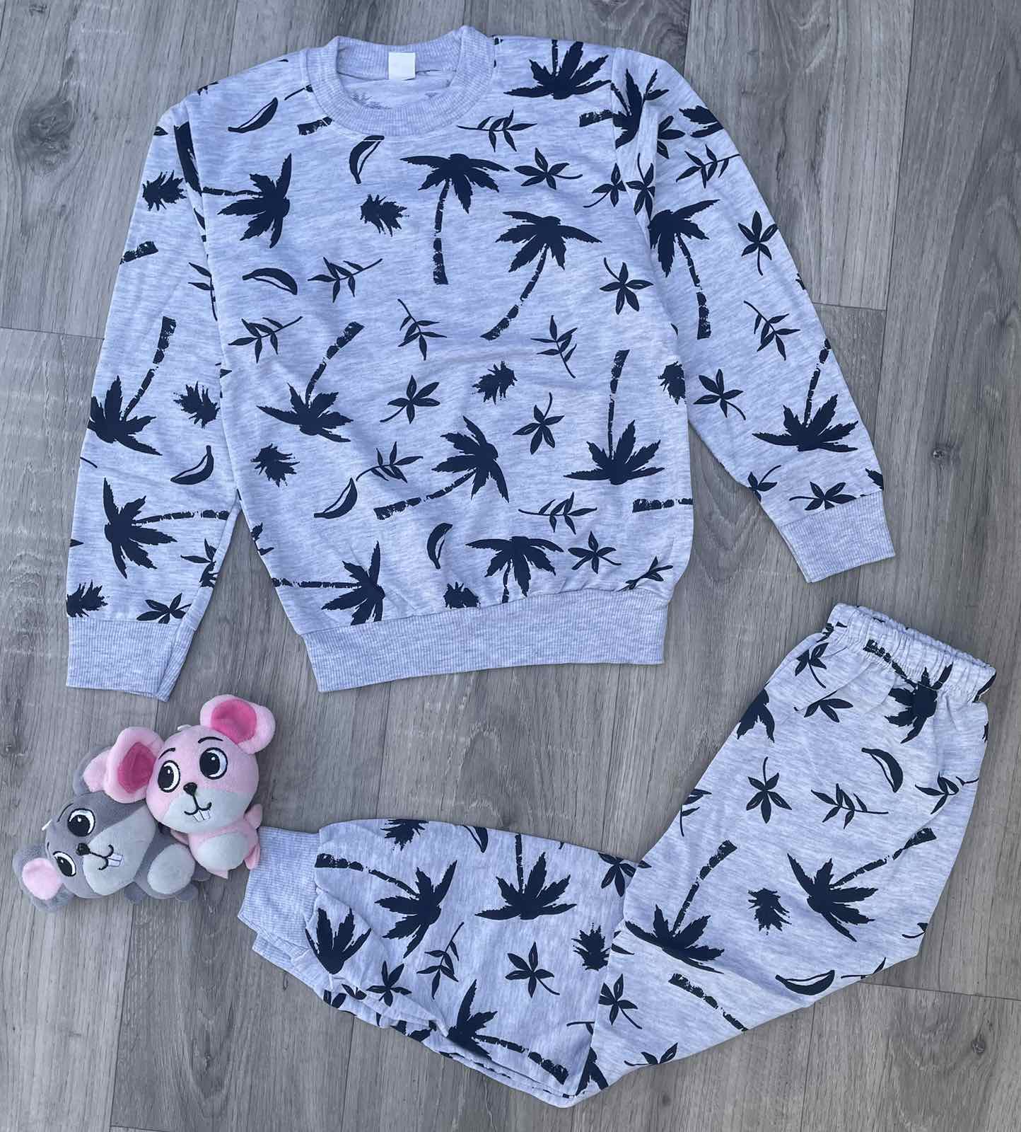 Пижама "Пальмы" серая, унисекс 9-10-11-12-13 лет оптом уп. - 5 шт.