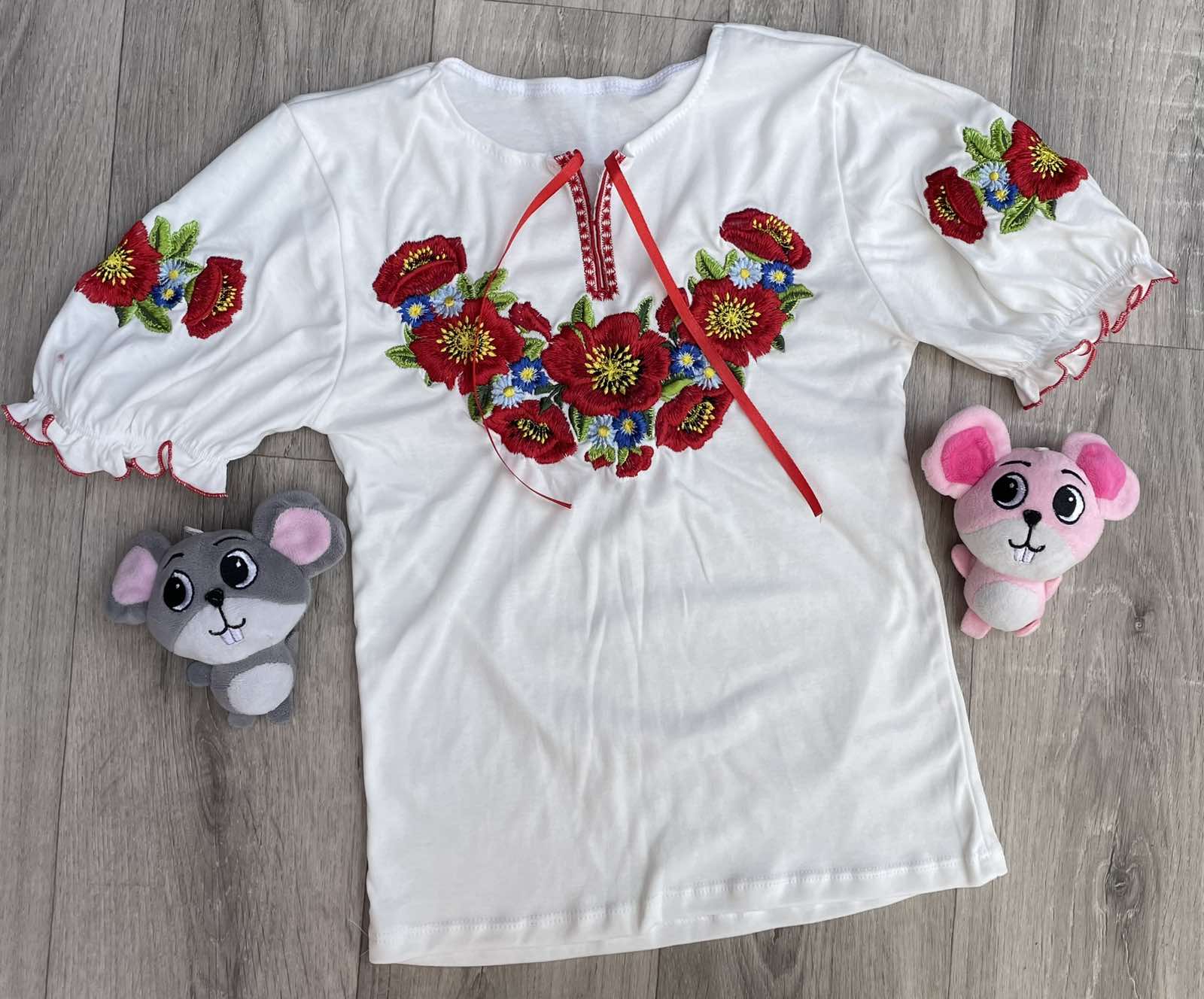 Вишиванка "Маки" біла, дівчинка 6-7-8 років оптом уп. - 3 шт.
