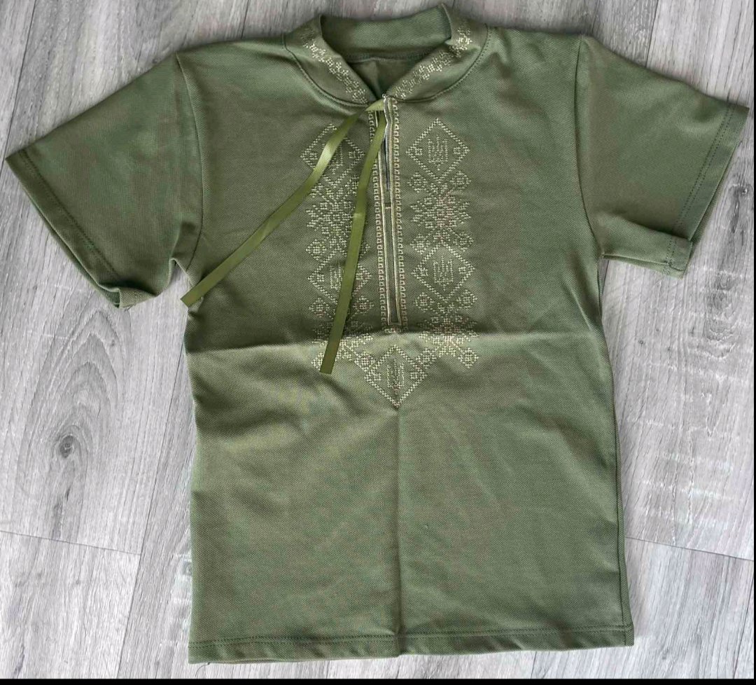 Вышиванка "Тризуб" хаки, мальчик 8-10-12 лет оптом уп. - 3 шт.