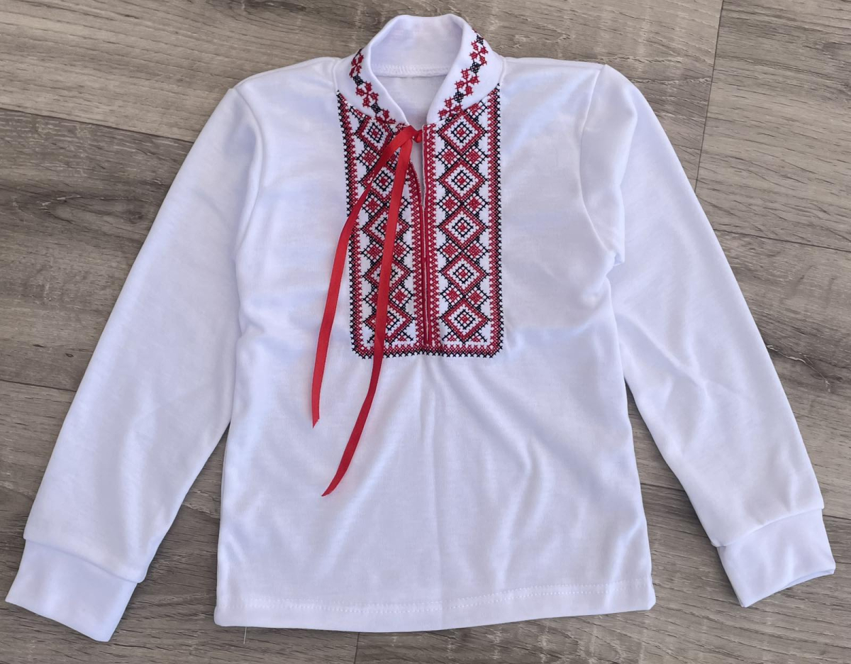 Вишиванка "Українець" біла з червоним, хлопчик 7-8-9 років оптом уп. - 3 шт.