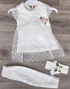 Комплект Lindax "Цветочки" белый, девочка 9-12-18 месяцев