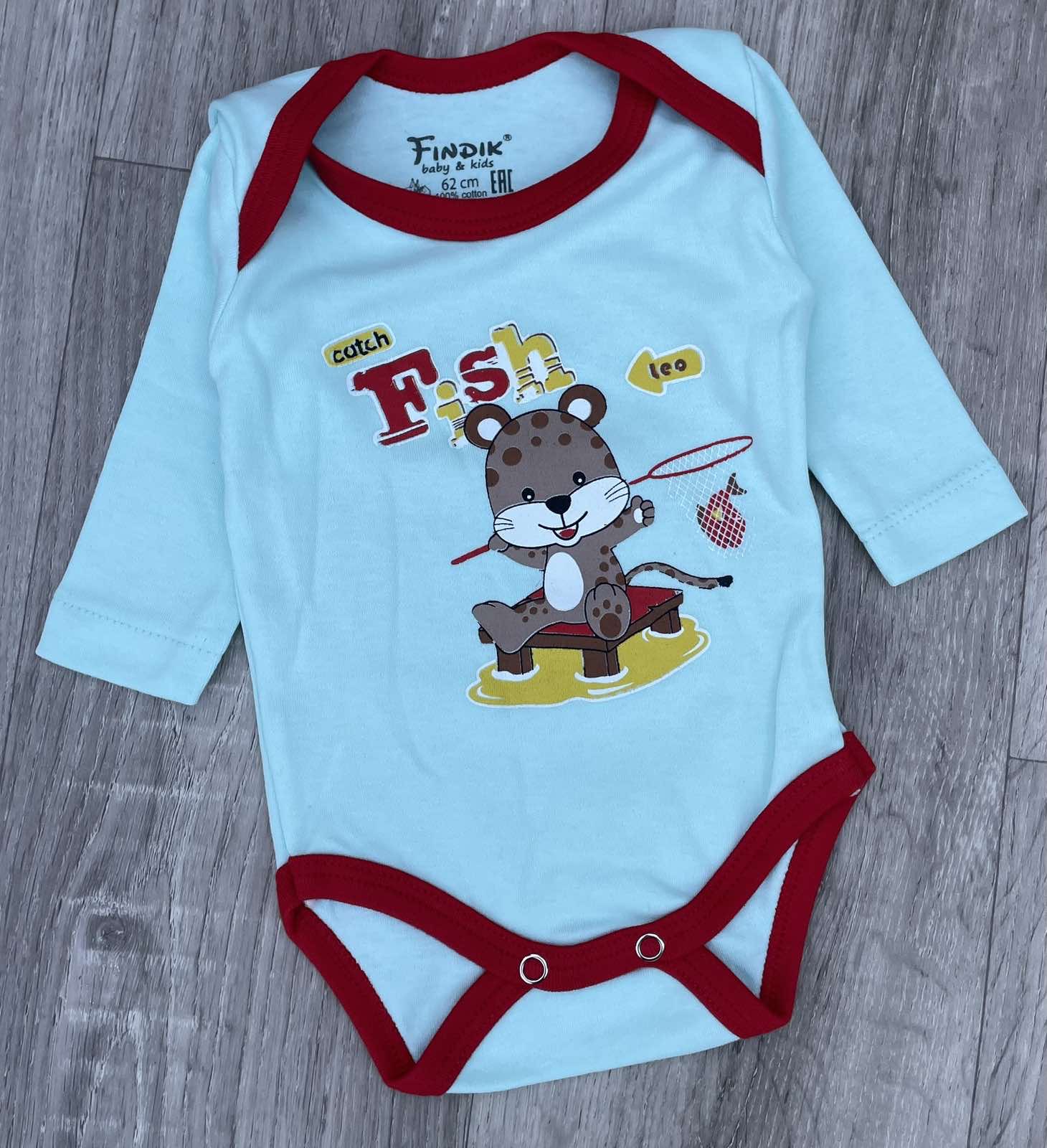 Боді Findik «Fish» бірюзовий, хлопчик 3-6-9-12-18 місяців оптом уп. - 5 шт.