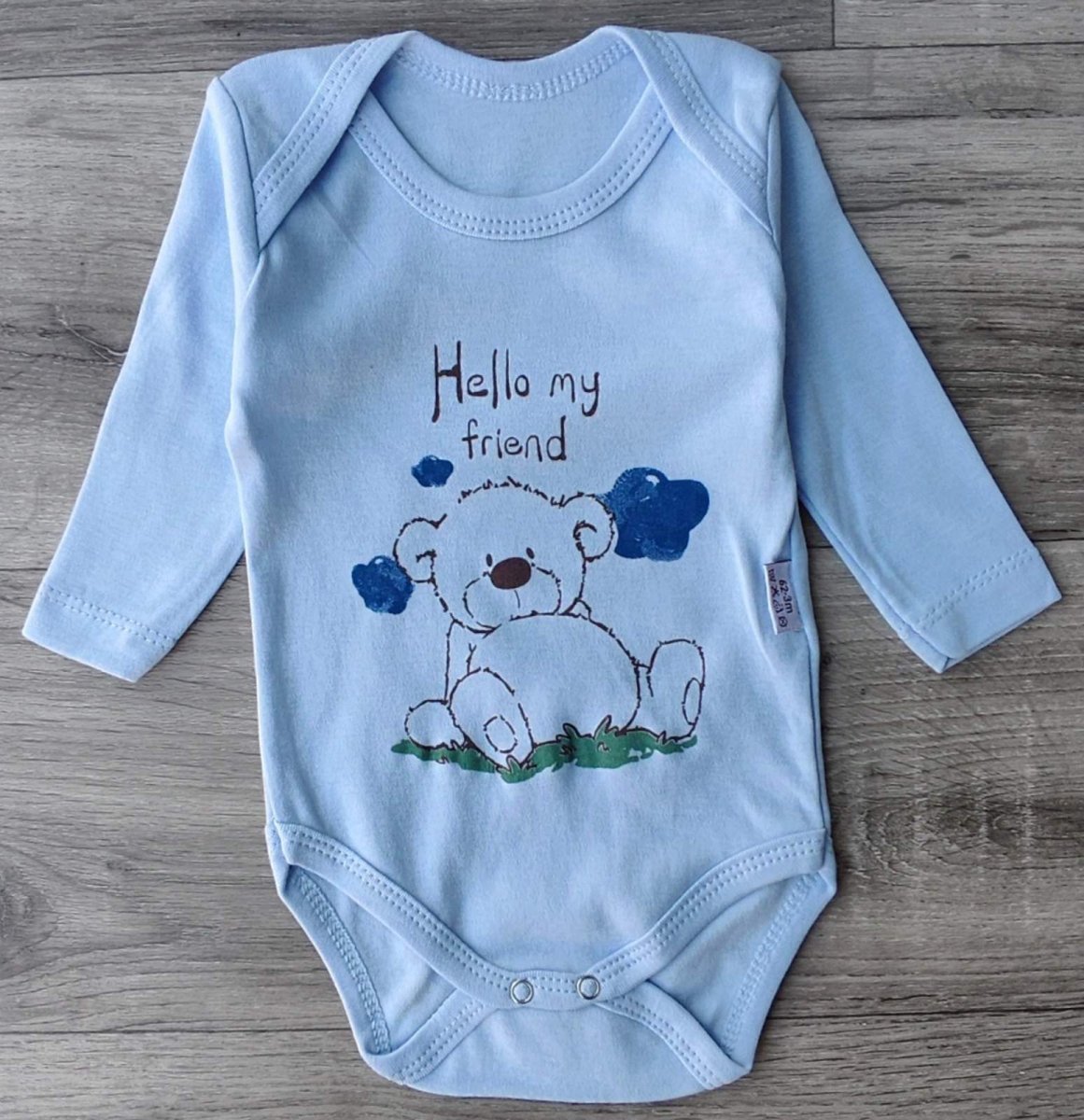 Боди Findik «Hello my friend» голубой, мальчик 3-6-9-12-18 месяцев оптом уп. - 5 шт.