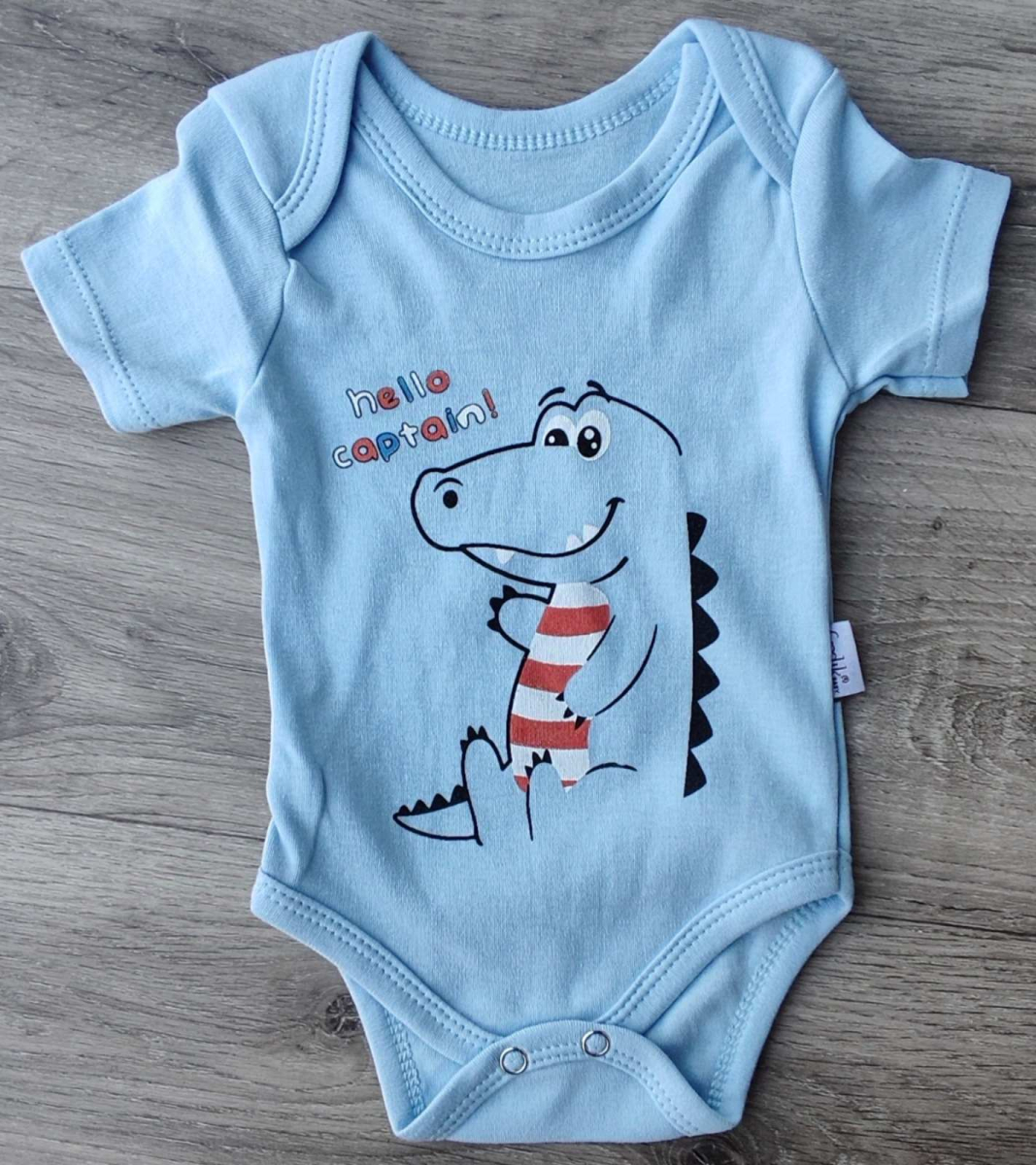 Боди Findik «Крокодил» голубой, унисекс 3-6-9-12-18 месяцев оптом уп. - 5 шт.