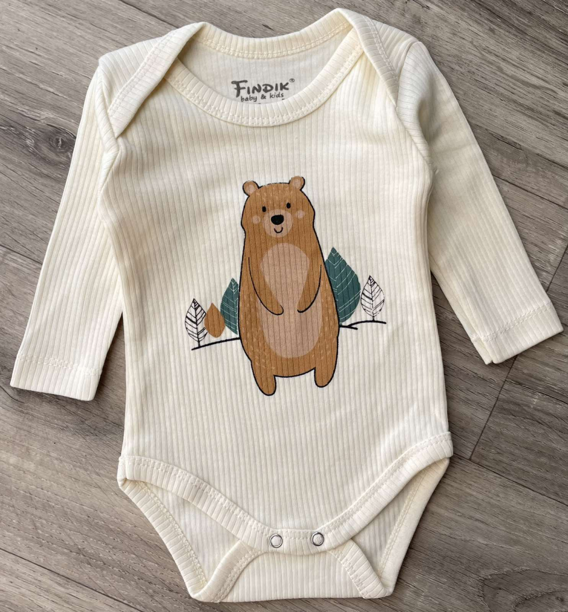Боди Findik "Мишка" молочный, мальчик 3-6-9-12-18 месяцев оптом уп. - 5 шт.