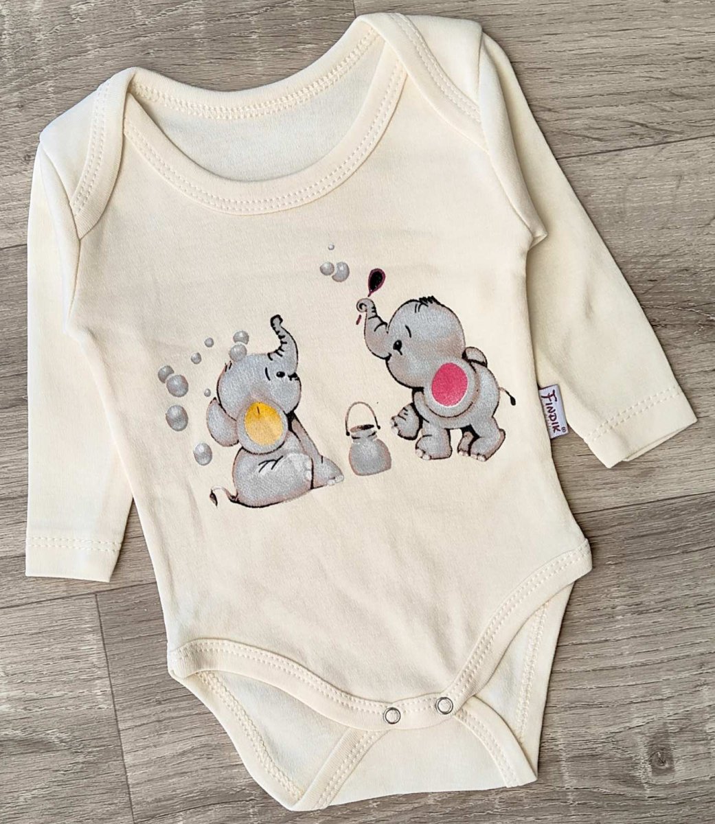 Боди Findik «Слоники» молочный, унисекс 3-6-9-12-18 месяцев оптом уп. - 5 шт.