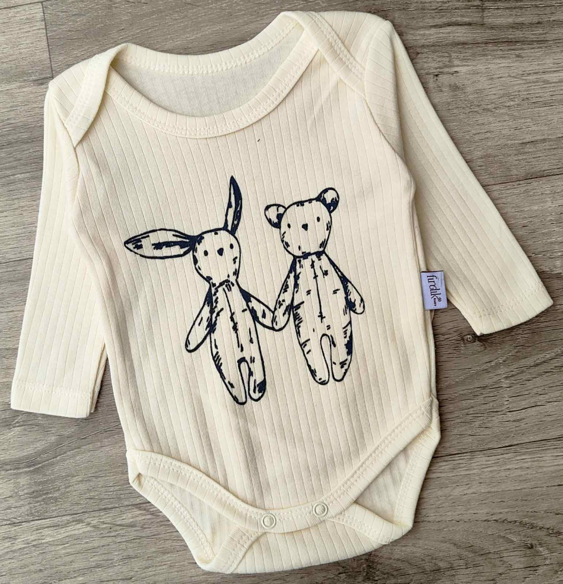 Боди Findik "Зайка+Медведь" молочный, унисекс 3-6-9-12-18 месяцев оптом уп. - 5 шт.