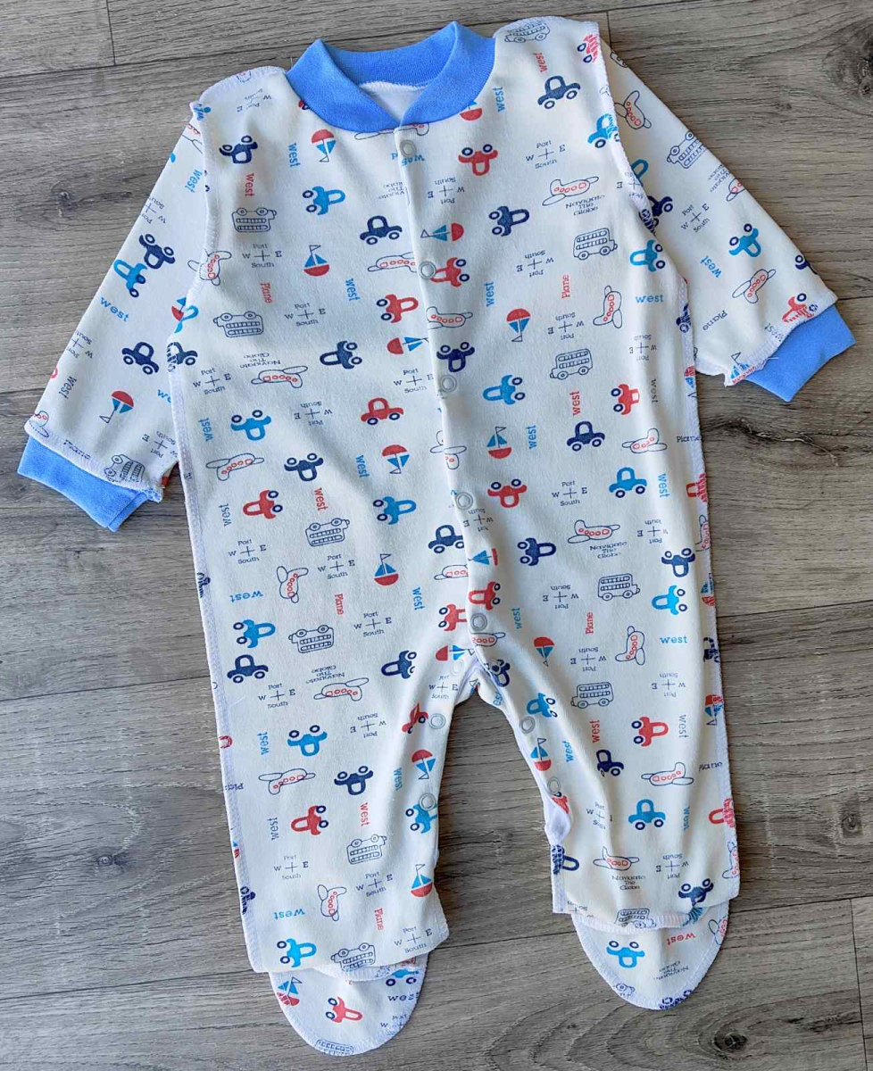 Человечек «Машинки» белый, мальчик 0-3-6 месяцев оптом уп. - 3 шт.