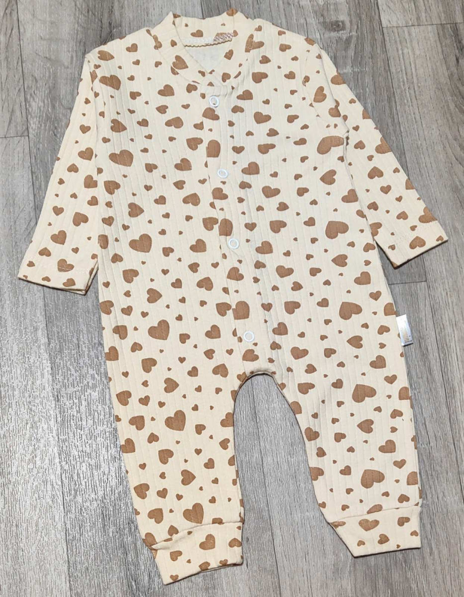 Человечек «Сердечки» бежевый, девочка 0-3-6 месяцев, фото