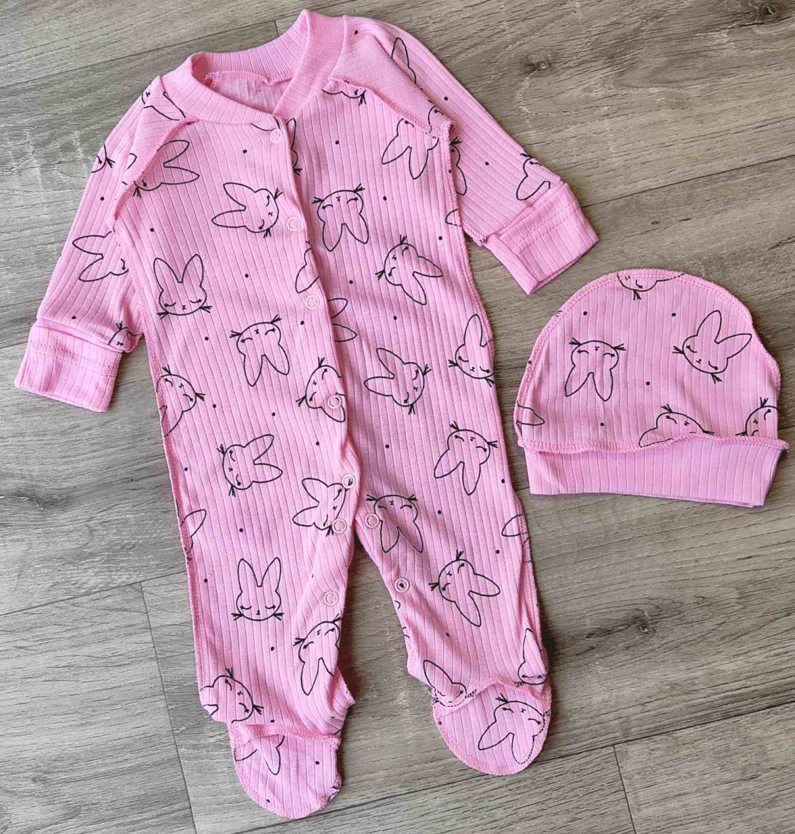 Человечек "Зайчик" розовый, девочка 0-3-6 месяцев оптом уп. - 3 шт.