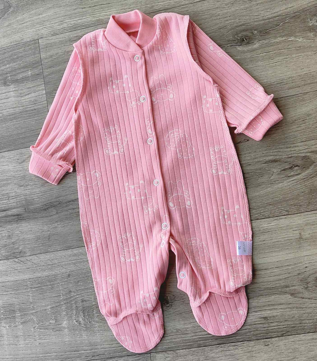 Человечек "Зверюшки" розовый, девочка 0-3 месяцев оптом уп. - 3 шт.