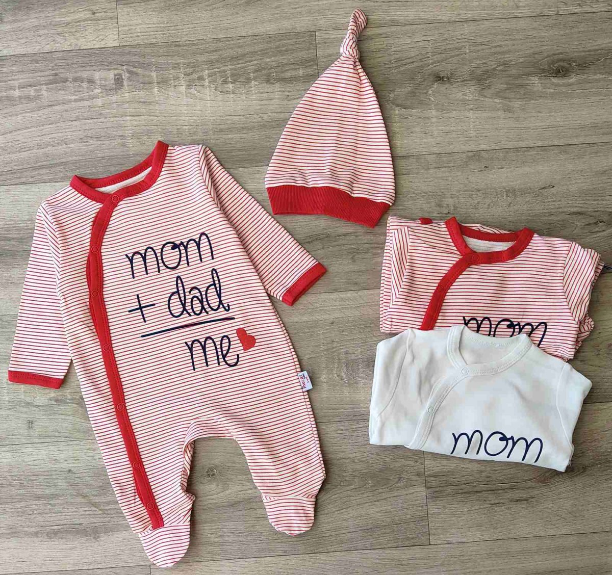 Чоловічок Murat Baby "Mom+Dad" червоний з білим, унісекс 0-3 місяців оптом уп. - 4 шт.