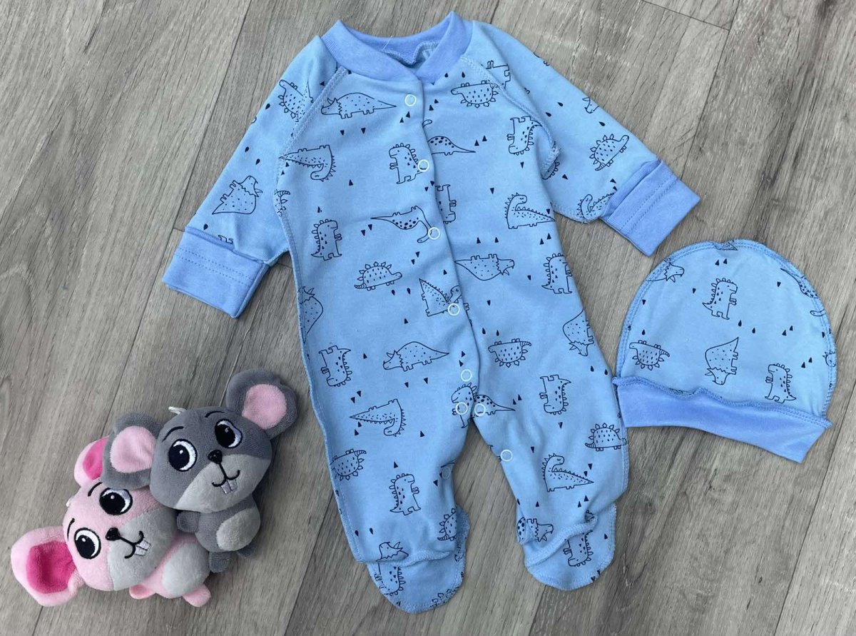 Чоловічок "Динозаври" блакитний, хлопчик 0-3-6 місяців оптом уп. - 3 шт.