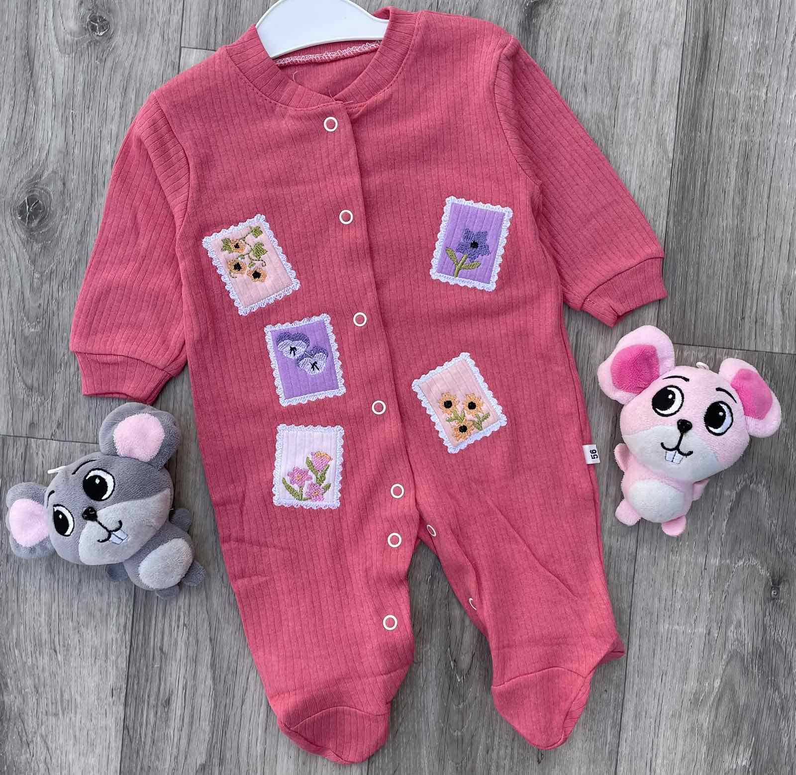 Человечек "Картинки" коралловый, девочка 0-3-6 месяцев оптом уп. - 3 шт.