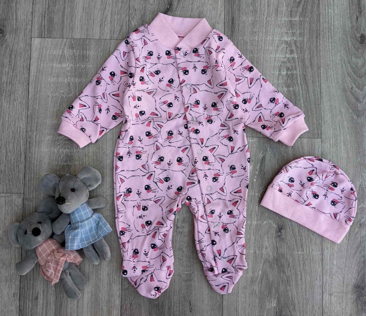 Человечек "Кошечка" розовый, девочка 0-3-6-9 месяцев оптом уп. - 4 шт.