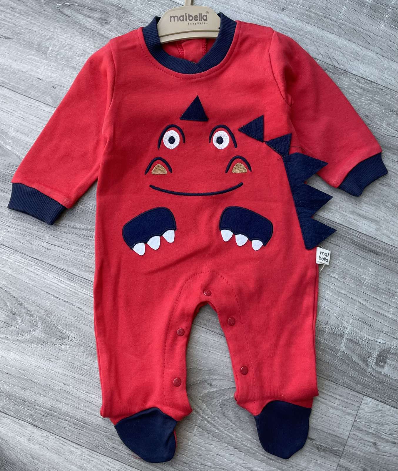 Человечек Maibella "Dino" красный, мальчик 0-3-6 месяцев оптом уп. - 3 шт.