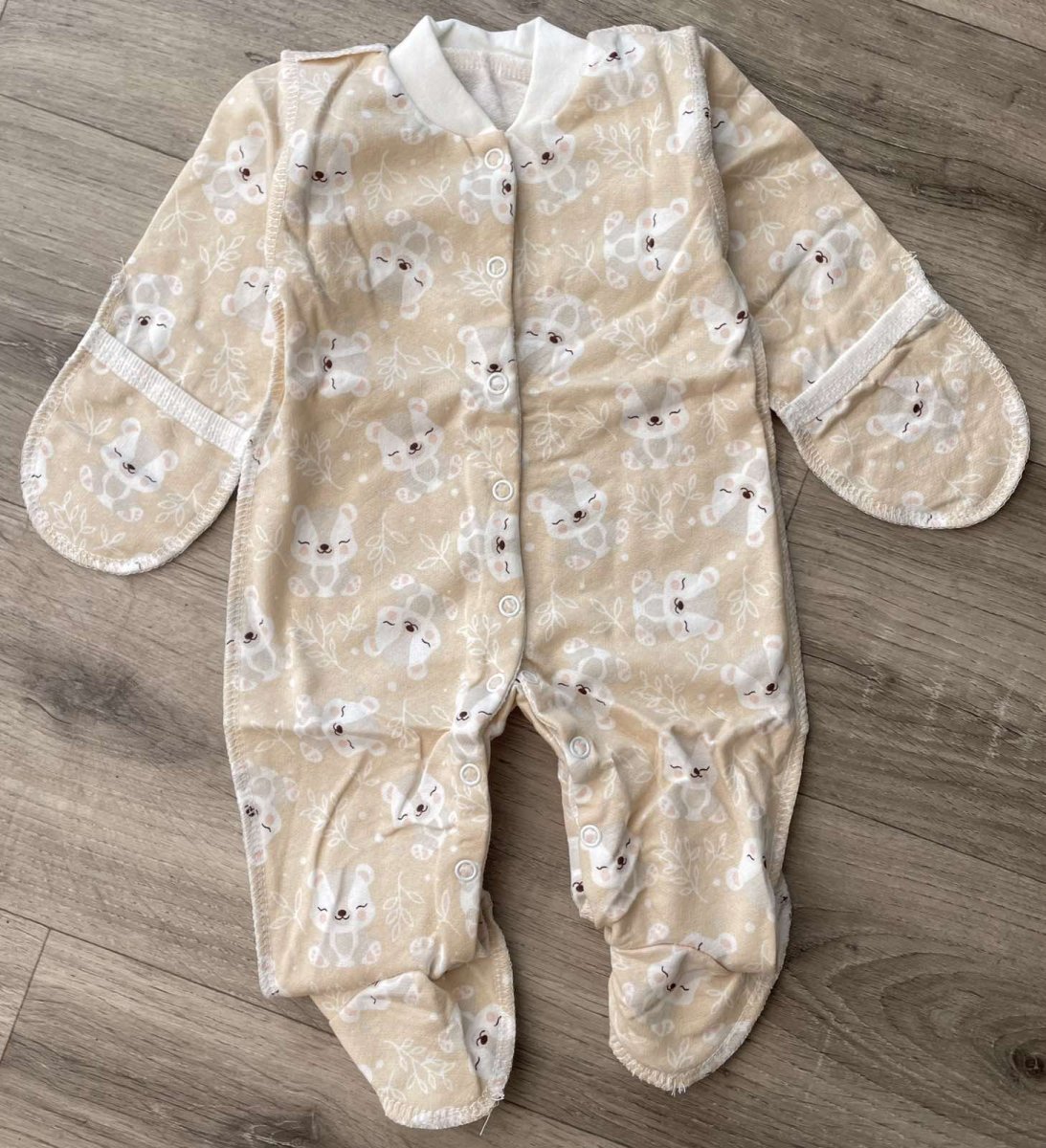 Человечек «Мишки» бежевый, девочка 0-3-6-9 месяцев оптом уп. - 4 шт.
