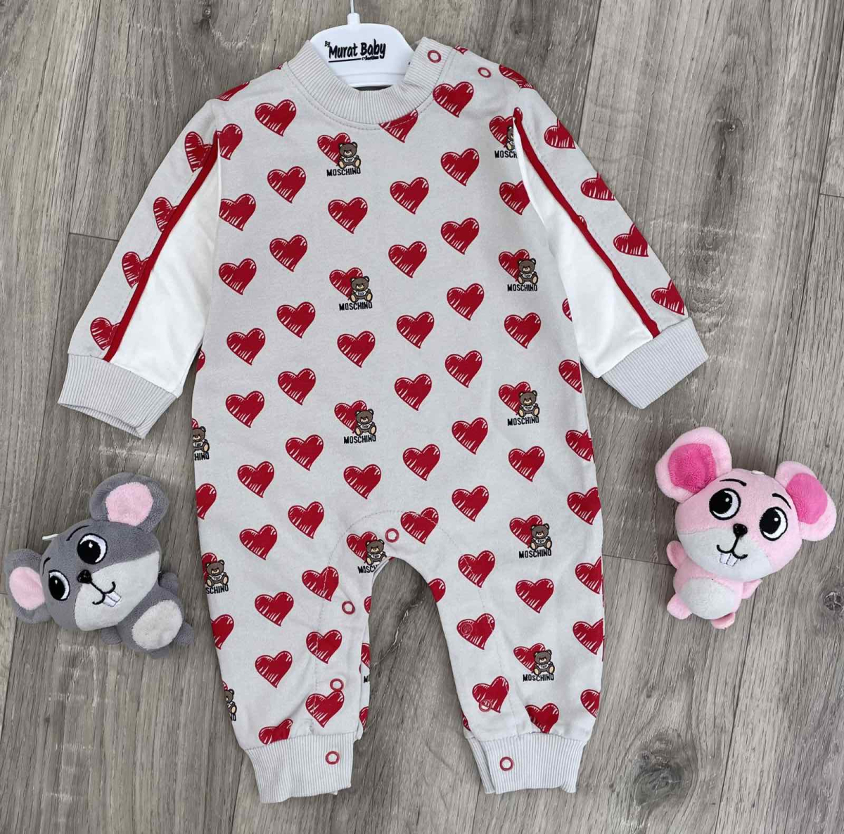 Человечек Murat Baby "Сердца" серый, девочка 3-6-9-12 месяцев оптом уп. - 4 шт.