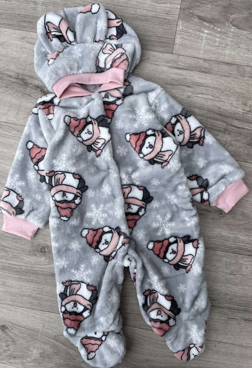 Человечек «Пингвинчики» серый, девочка 6-9-12 месяцев, фото