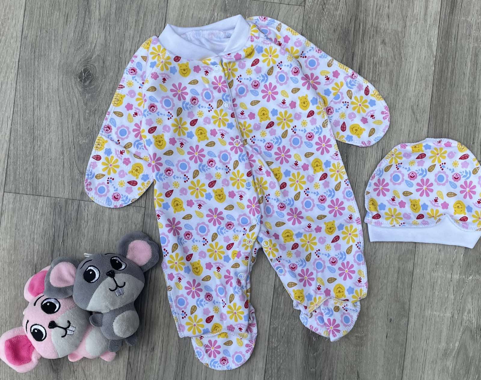 Человечек "Цветочки" белый, девочка 0-3-6 месяцев оптом уп. - 3 шт.