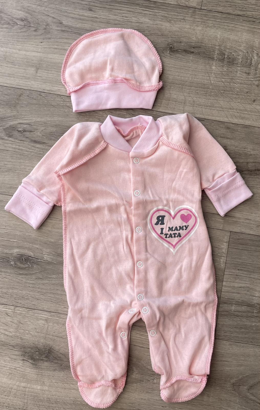 Человечек "Я❤️ маму і тата" пудра, девочка 0-3-6 месяцев оптом уп. - 3 шт.