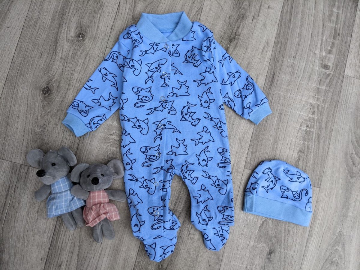 Чоловічок "Рибка", блакитний, хлопчик 0-3-6-9 місяців оптом уп. - 4 шт.