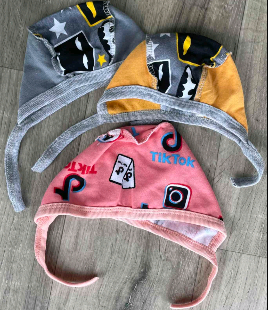Чепчики "Радуга" разные цвета, мальчик+девочка 0-3 месяцев, фото
