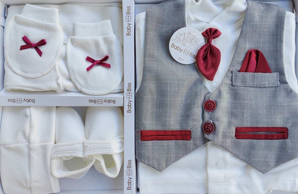 Комплект Baby Biss "Джентльмен" серо-бордовый, мальчик 0-6 месяцев оптом уп. - 1 шт.