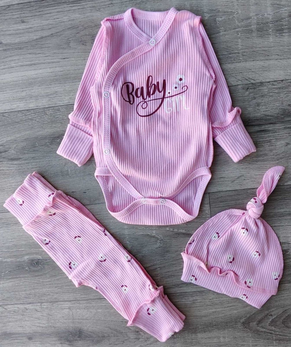 Комплект «цветочки» розовый, девочка 0-3 месяцев оптом уп. - 2 шт.