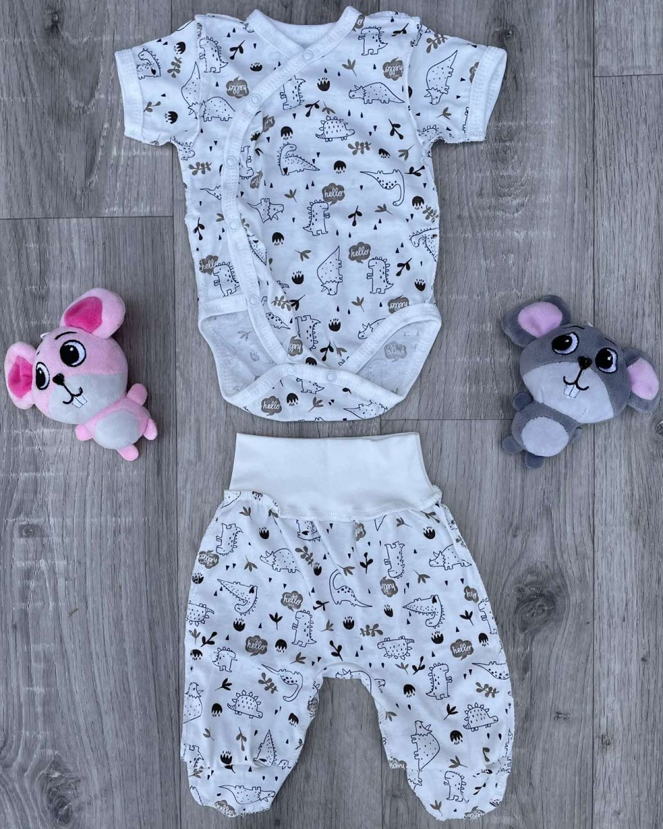 Комплект "Динозаври" бежевий, унісекс 0-3 місяців оптом уп. - 2 шт.