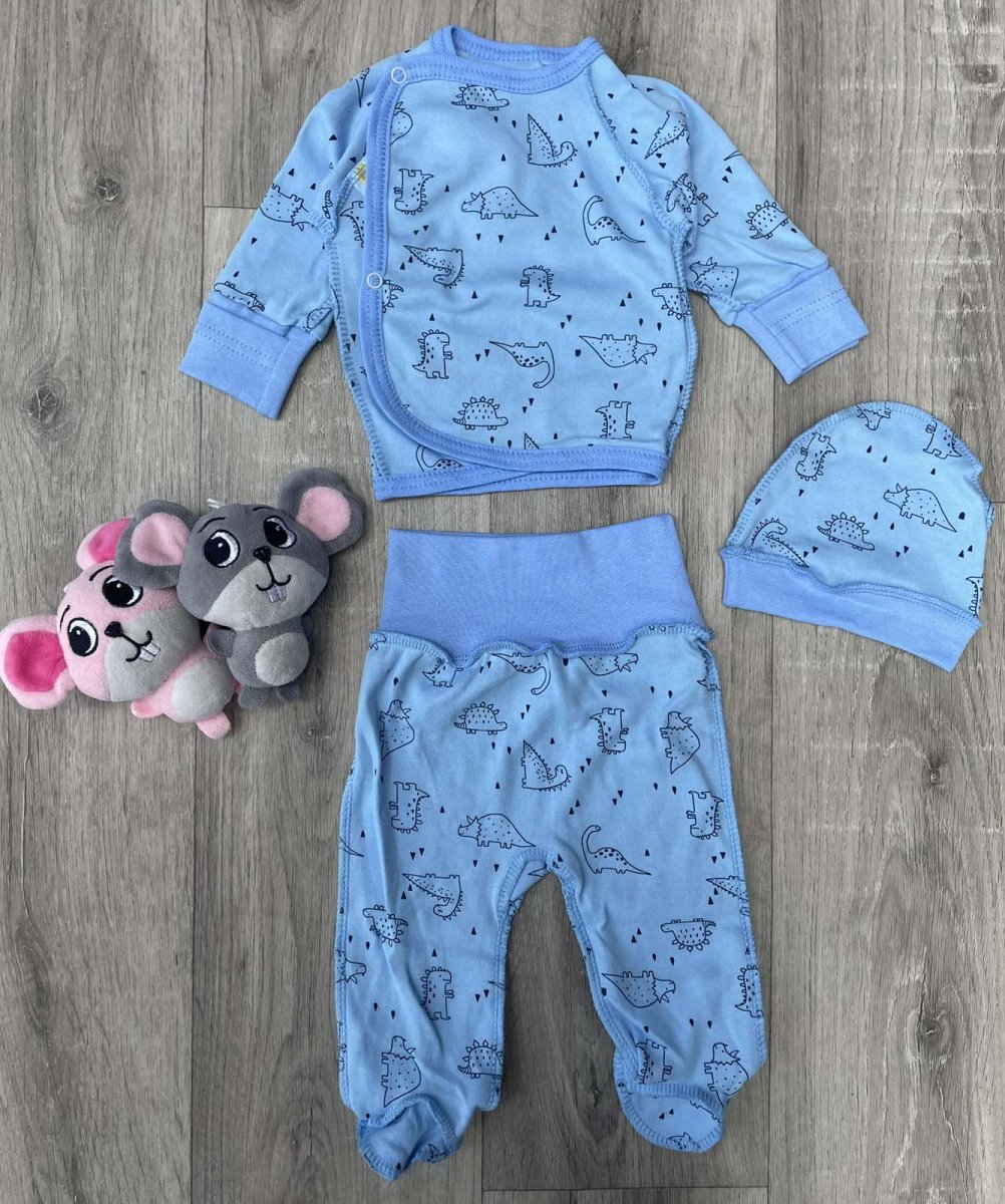 Комплект "Динозавры" голубой, мальчик 0-3 месяцев оптом уп. - 4 шт.