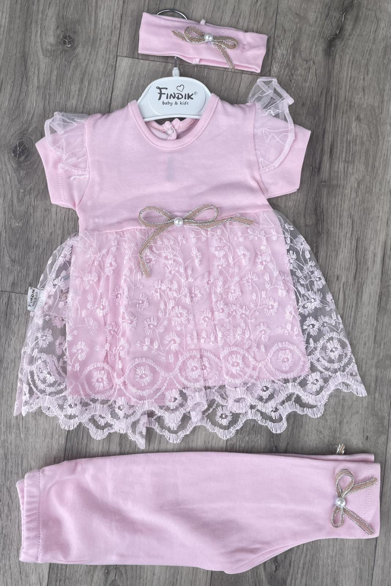 Комплект Findik «Бантик» розовый, девочка 3-6-9 месяцев оптом уп. - 3 шт.