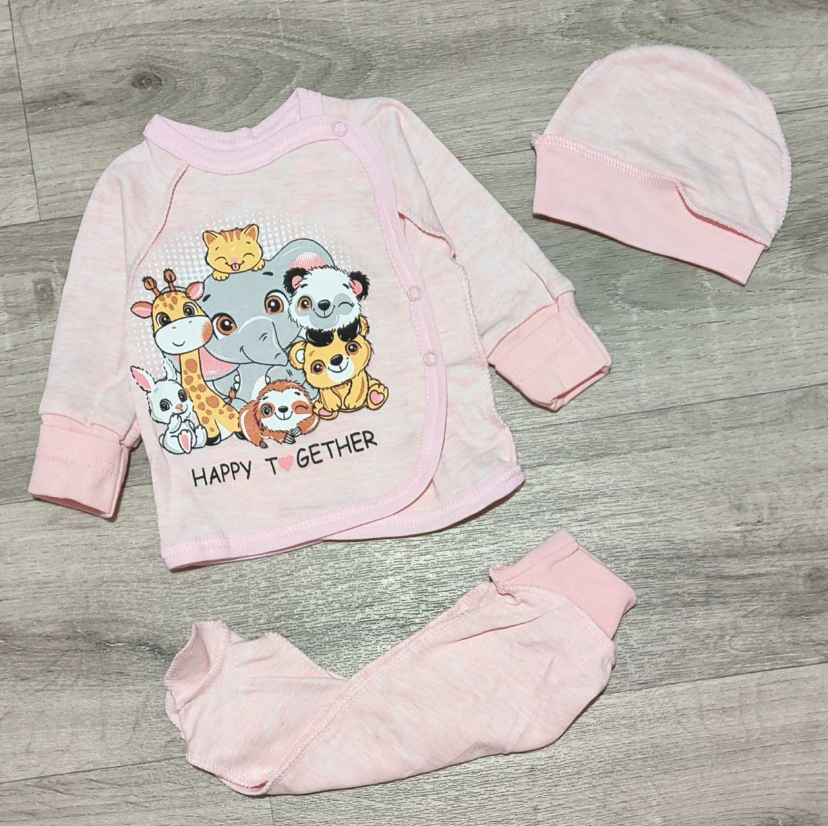 Комплект "Happy" персиковый, девочка 0-3 месяцев оптом уп. - 4 шт.