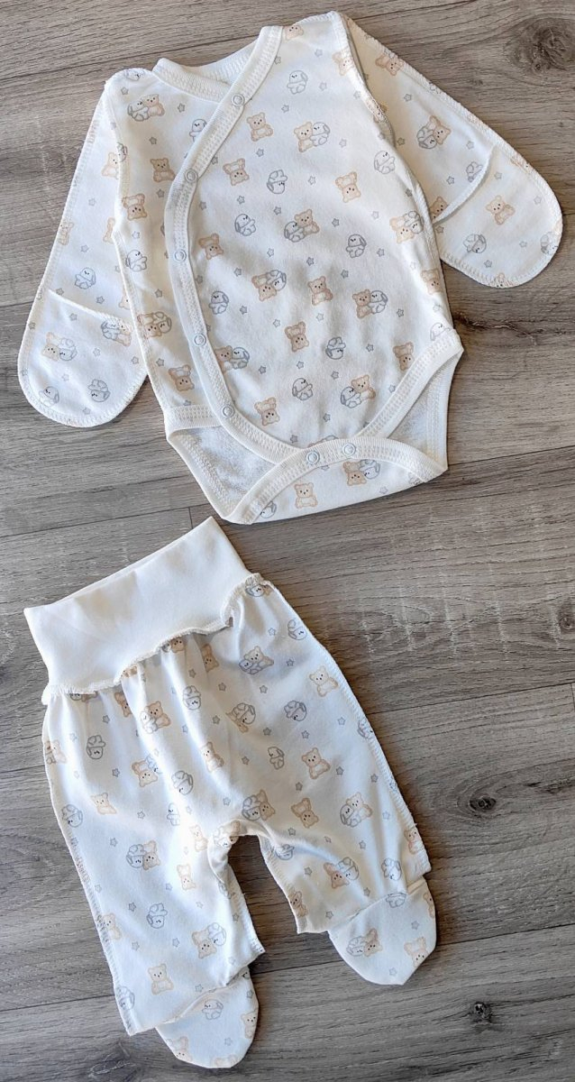 Комплект «Медвежата» белый, унисекс 0-3 месяцев оптом уп. - 2 шт.