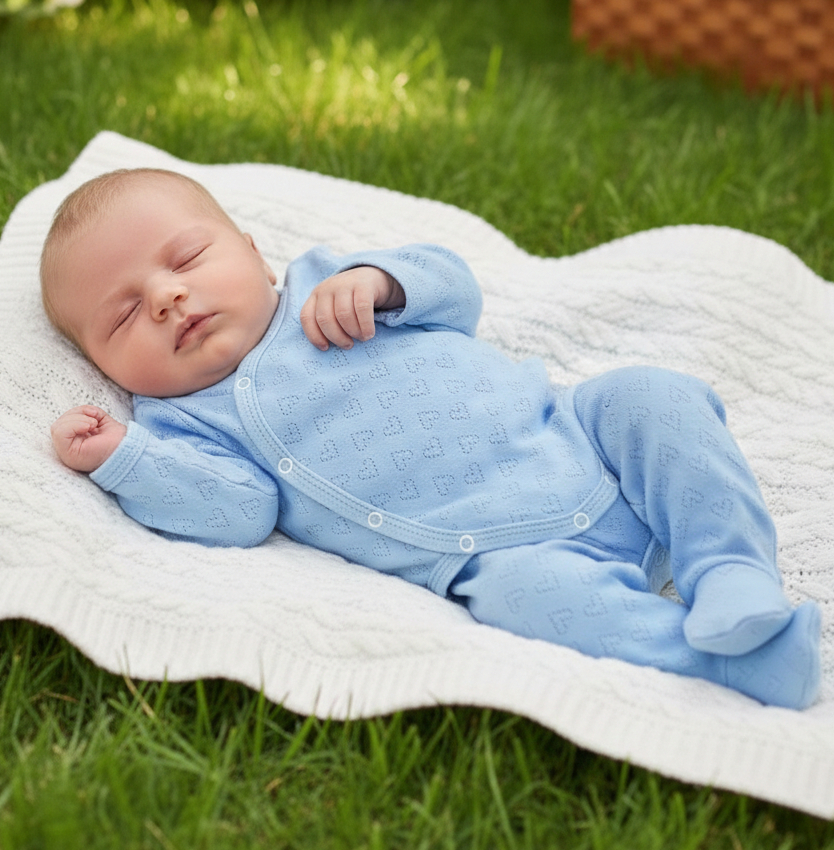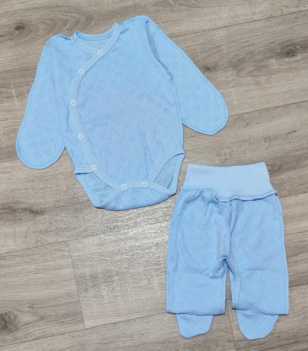 Комплект "Однотонний " блакитний, хлопчик 0-3 місяців оптом уп. - 2 шт.