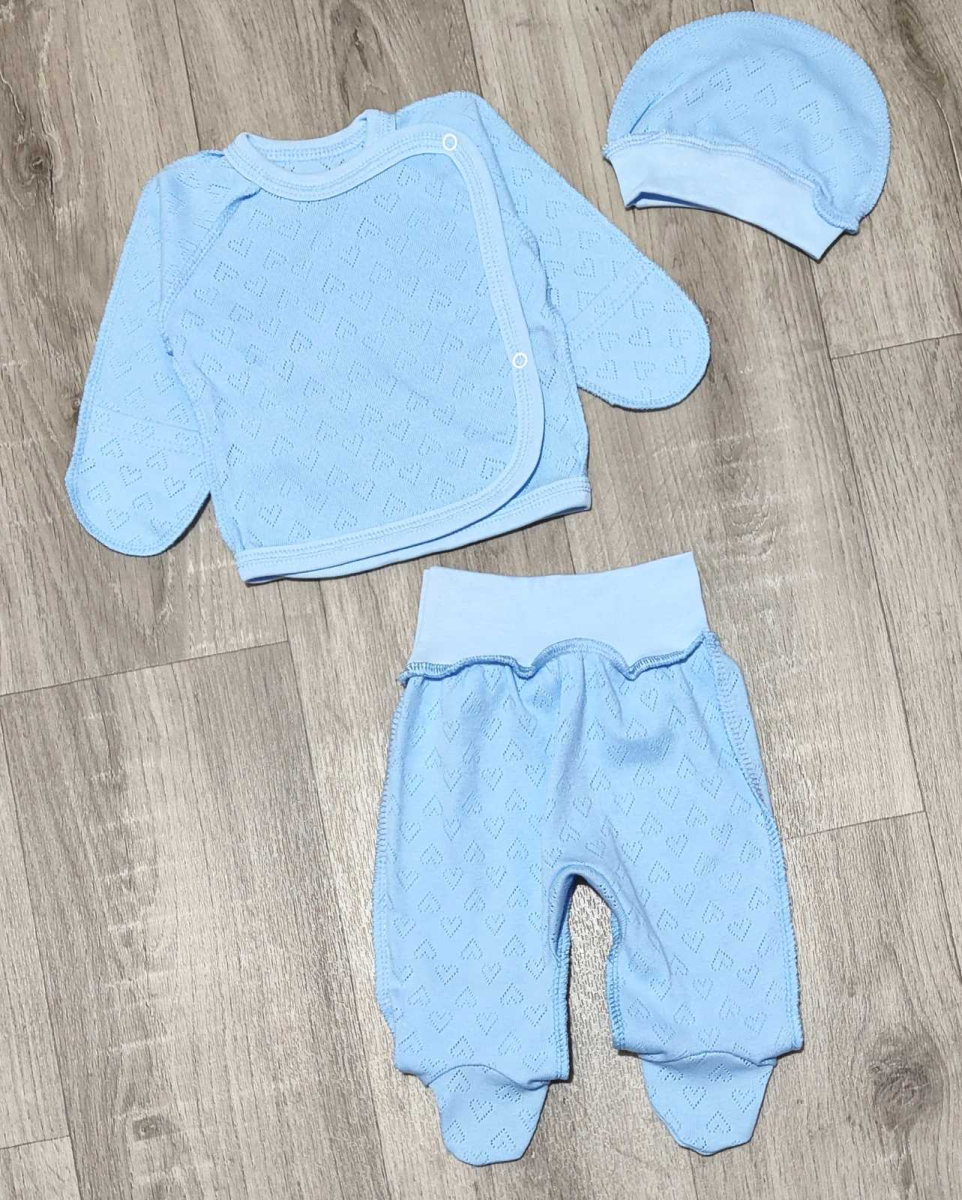 Комплект "Однотонний " блакитний, хлопчик 0-3 місяців оптом уп. - 2 шт.