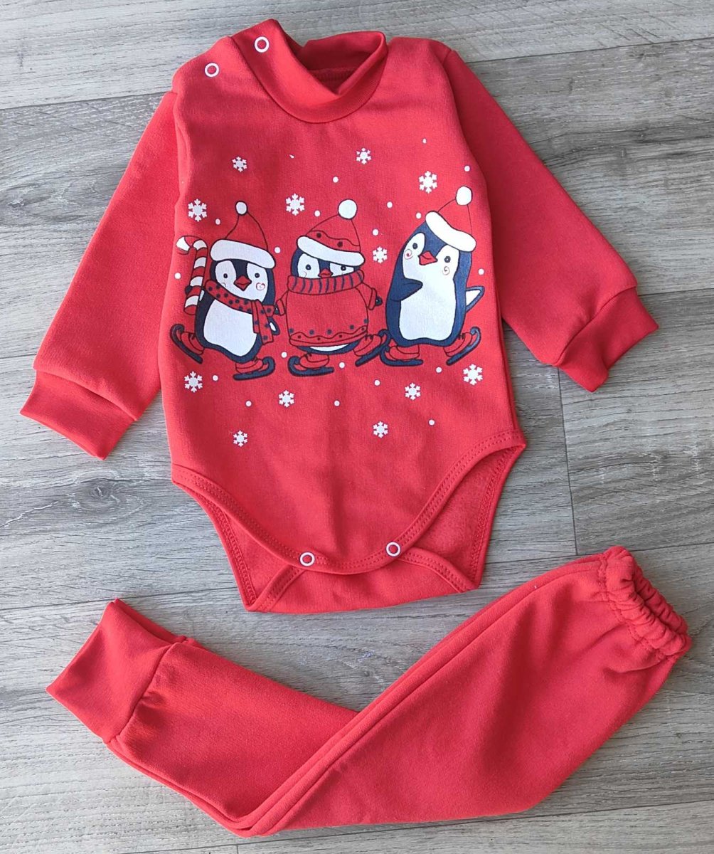 Комплект "Пингвины" красный, унисекс 6-9-18-36 месяцев оптом уп. - 4 шт.