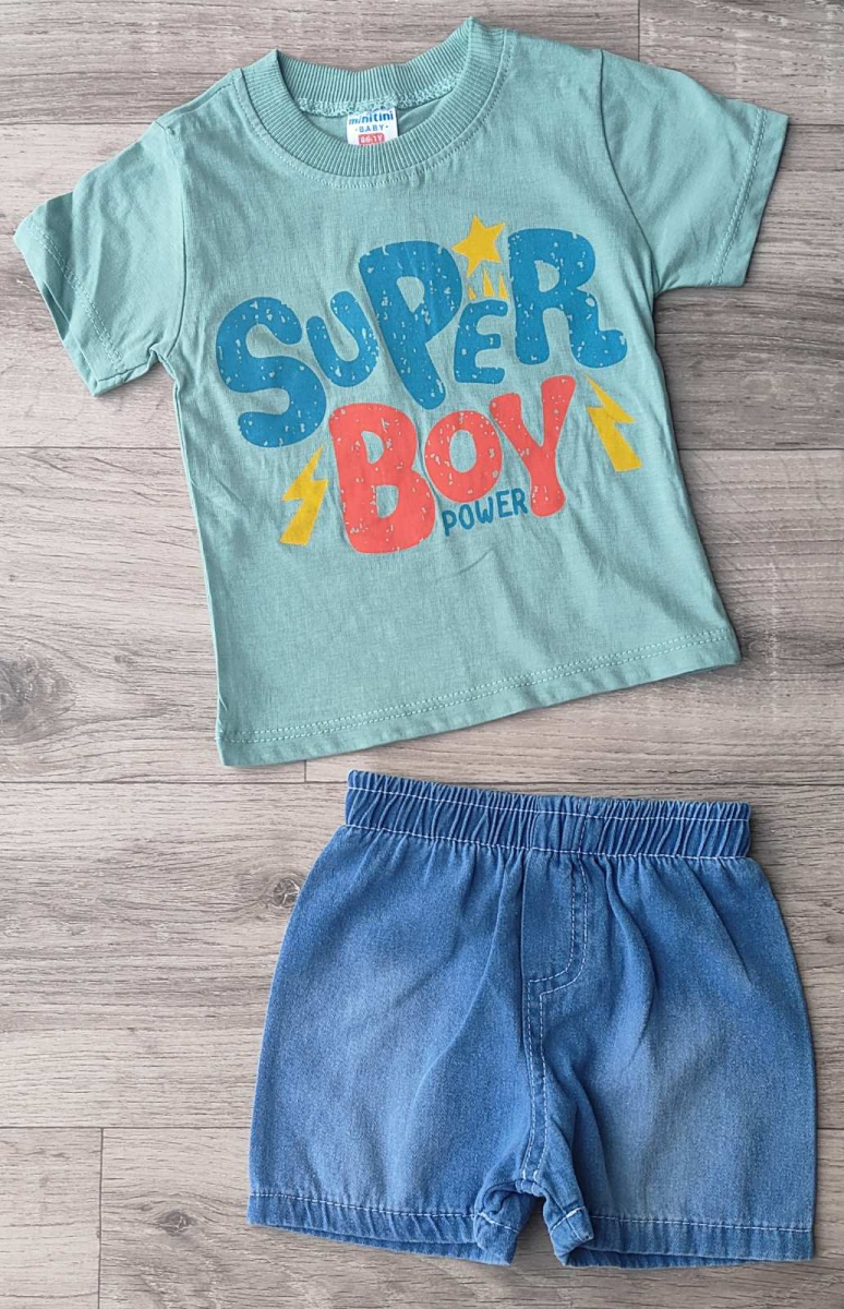 Костюм Minitini Baby «Super Boy» зеленый, мальчик 1-2-3-4 года оптом уп. - 4 шт.