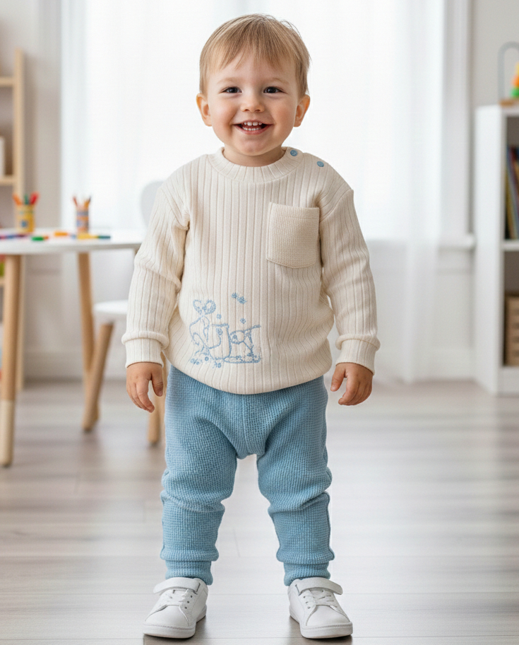 Костюм Moon "Зверыки", голубой, мальчик 3-6-9-12-18 месяцев оптом уп. - 5 шт.