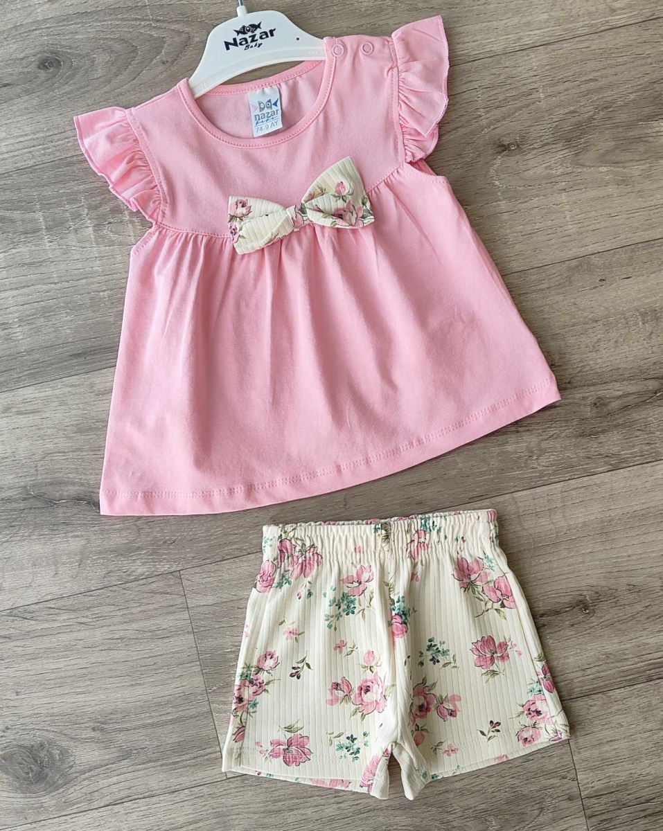 Костюм Nazar Baby "Бантик+цветочки" розовый, девочка 9-12-18-24 месяцев оптом уп. - 4 шт.