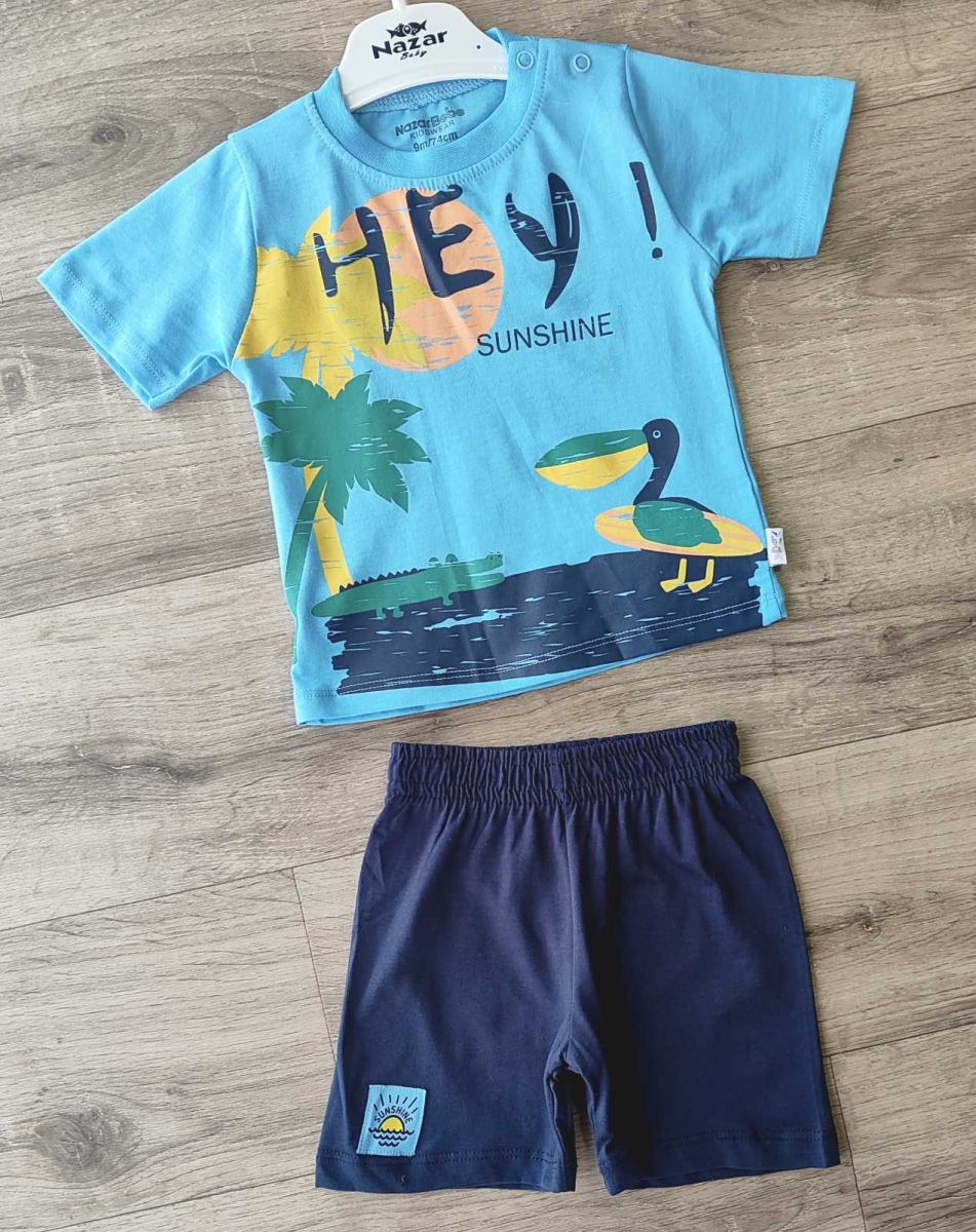 Костюм Nazar Baby "Hey!" голубой, мальчик 9-12-18-24 месяцев оптом уп. - 4 шт.