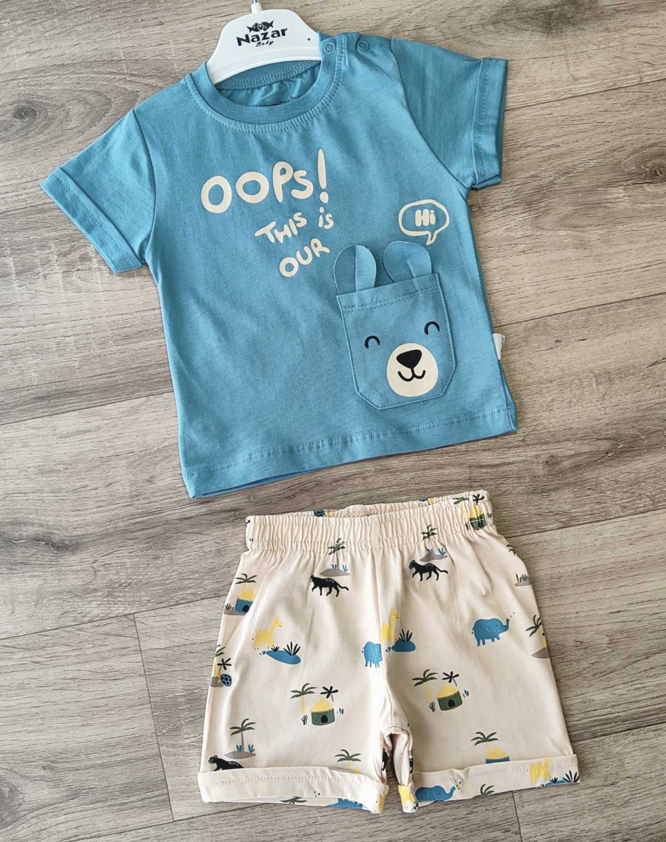 Костюм Nazar Baby "Oops!" голубой, унисекс 9-12-18-24 месяцев оптом уп. - 4 шт.