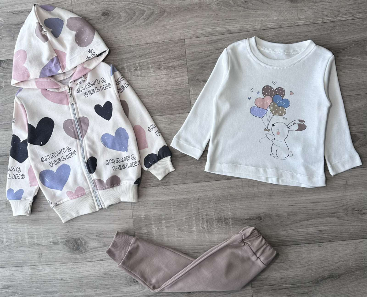 Костюм Partner "Love You" коричневый, девочка 9-12-18-24 месяцев оптом уп. - 4 шт.