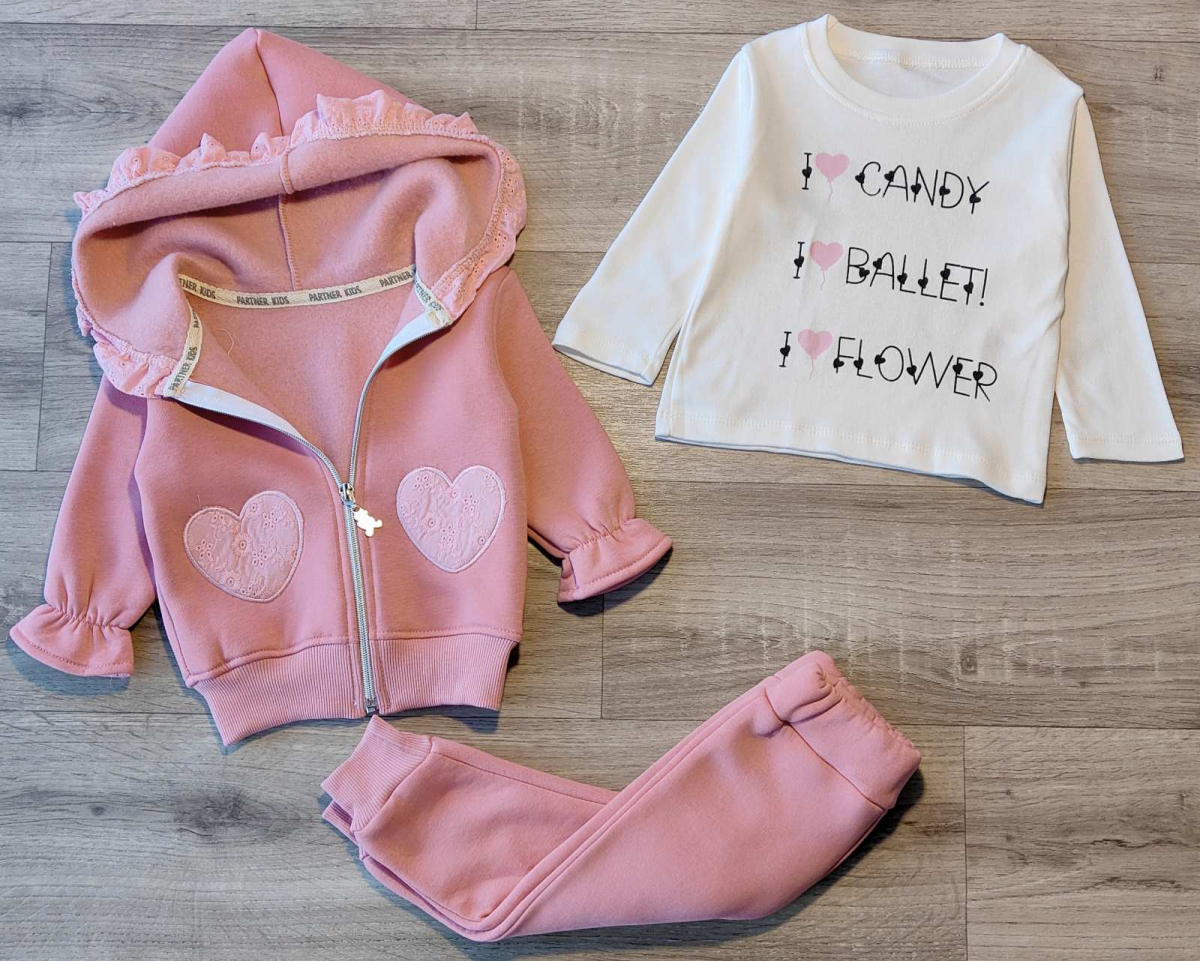 Костюм Partner "Сердца" малиновый, девочка 9-12-18-24 месяцев оптом уп. - 4 шт.