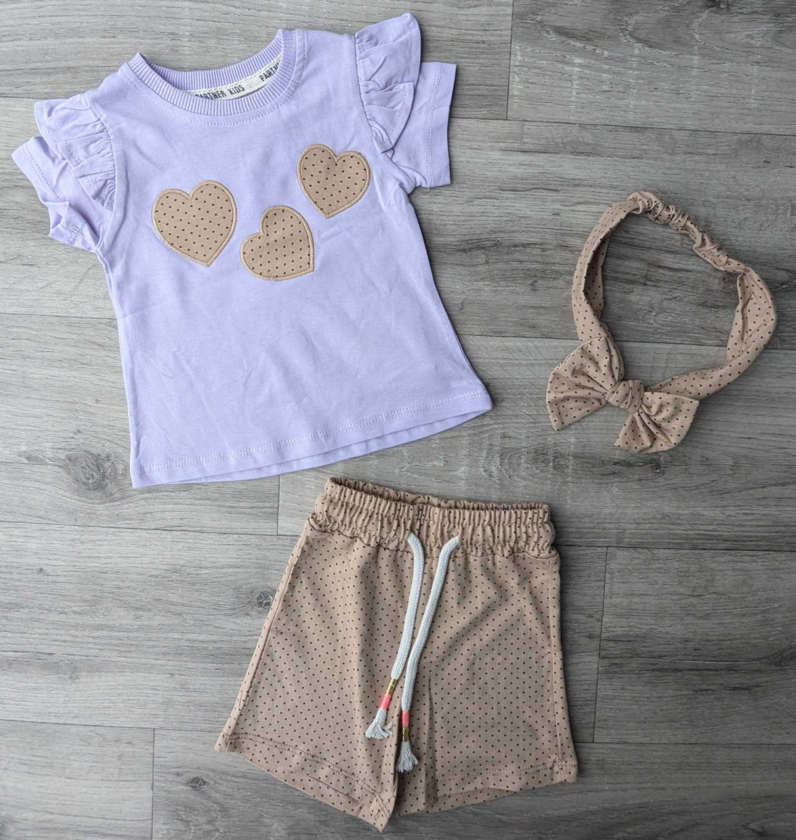 Костюм Partner «Сердца» сиреневый, девочка 9-12-18-24 месяцев оптом уп. - 4 шт.