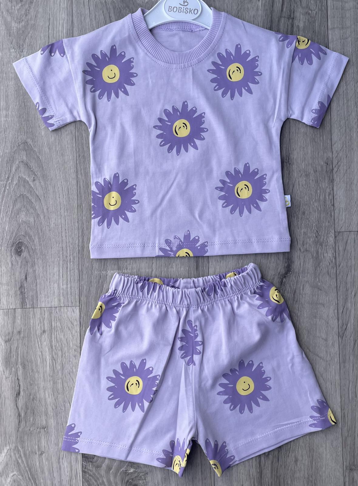 Костюм Bobisko "Цветочки" лавандовый, девочка 9-12-18-24 месяцев оптом уп. - 4 шт.