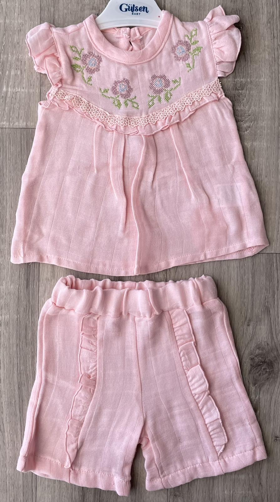 Костюм Gulsen «Цветочки» персиковый, девочка 6-9-12-18 месяцев оптом уп. - 4 шт.